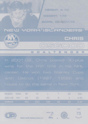 2002-03 Pacific Heads Up Press Plates (back) #73