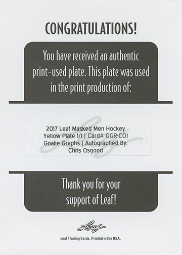 2016-17 Leaf Masked Men Goalie Graphs Press Plates (Black) #GGR-CO1